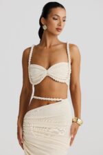 Make a statement this summer in AHRIA. She features hand crafted rope detailing, a sweetheart neckline and a gold metal back closure.