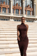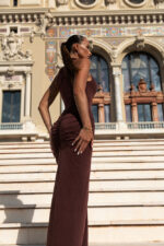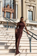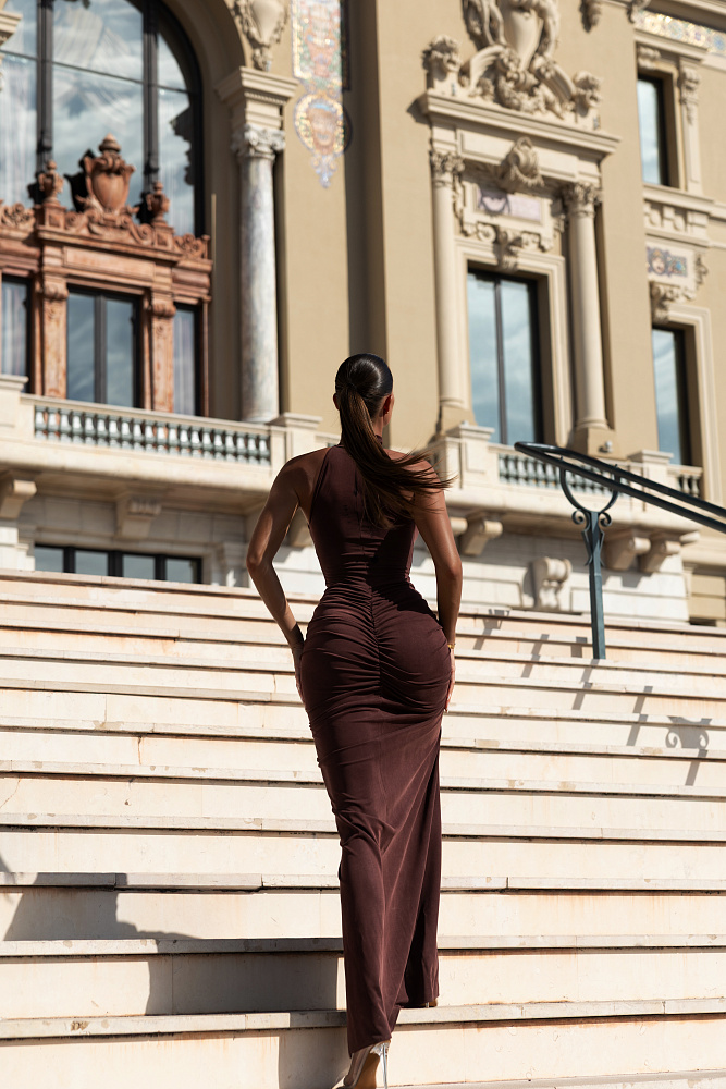 Dress MERYL made of delicate fabric in a noble maxi length. Native draperies along the chest and hips, “closed” design of the neckline in contrast with open shoulders. And the hem is gathered, creating a beautiful effect in the dynamics of the step. inspired by aristocratic elegance and femininity!