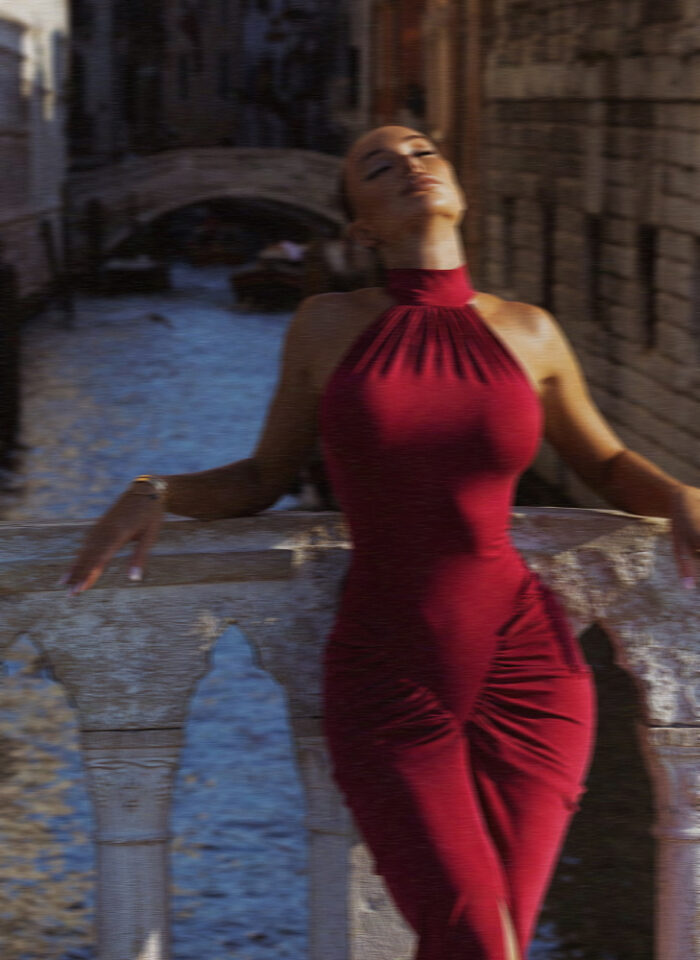Dress MERYL made of delicate fabric in a noble maxi length. Native draperies along the chest and hips, “closed” design of the neckline in contrast with open shoulders. And the hem is gathered, creating a beautiful effect in the dynamics of the step. inspired by aristocratic elegance and femininity!